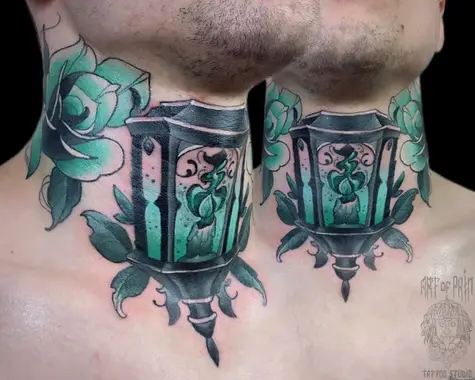Татуировка мужская нью скул на шее фонарь 5171