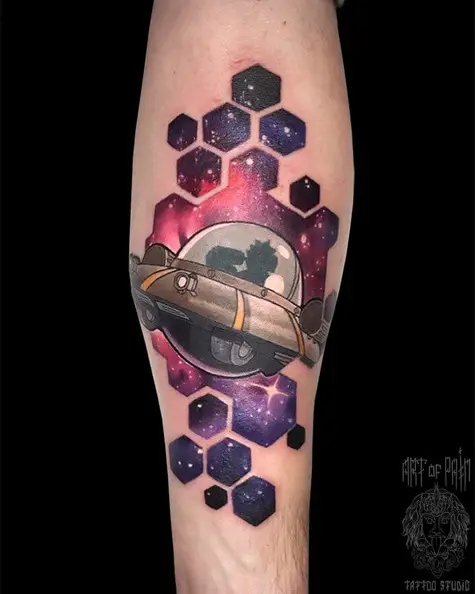 Татуировка мужская нью скул на предплечье космос, нло 5177