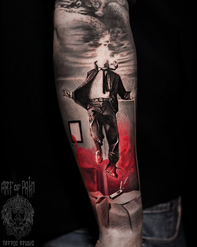 Татуировка мужская реализм на предплечье человек (Слава Tech Lunatic) 5199