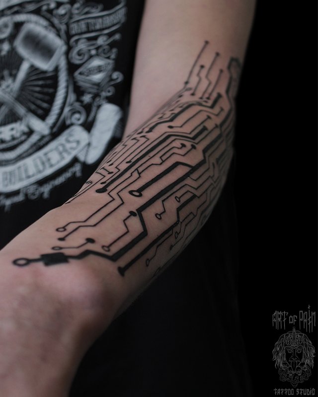 Татуировка мужская графика на предплечье микросхемы (вид сверху) (Надежда Полякова) 5233
