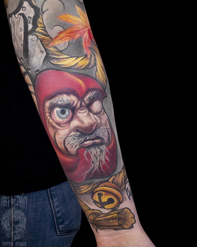 Татуировка мужская япония и реализм на предплечье дарума 5243