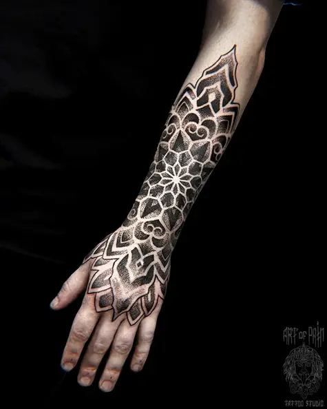 Татуировка мужская орнаментал на предплечье мандала 5266