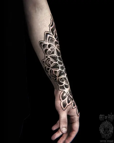 Татуировка мужская орнаментал на предплечье мандала 5267