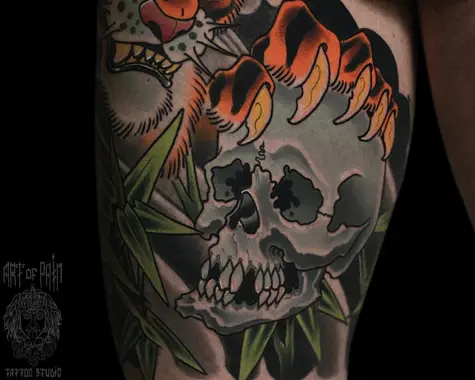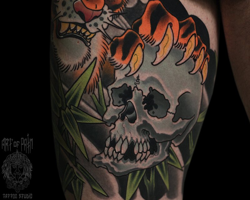 Татуировка мужская япония на бедре череп 5301