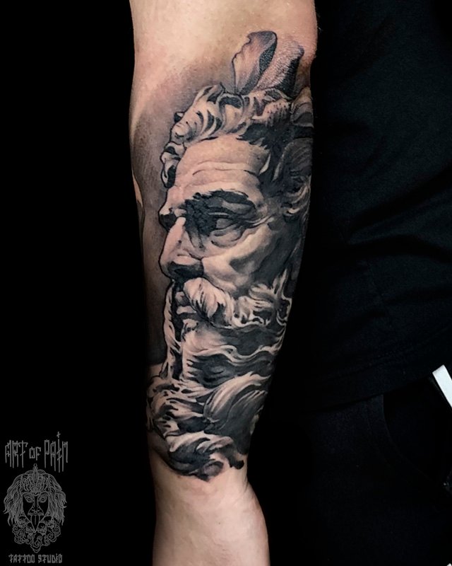 Татуировка мужская реализм на предплечье Посейдон 5312