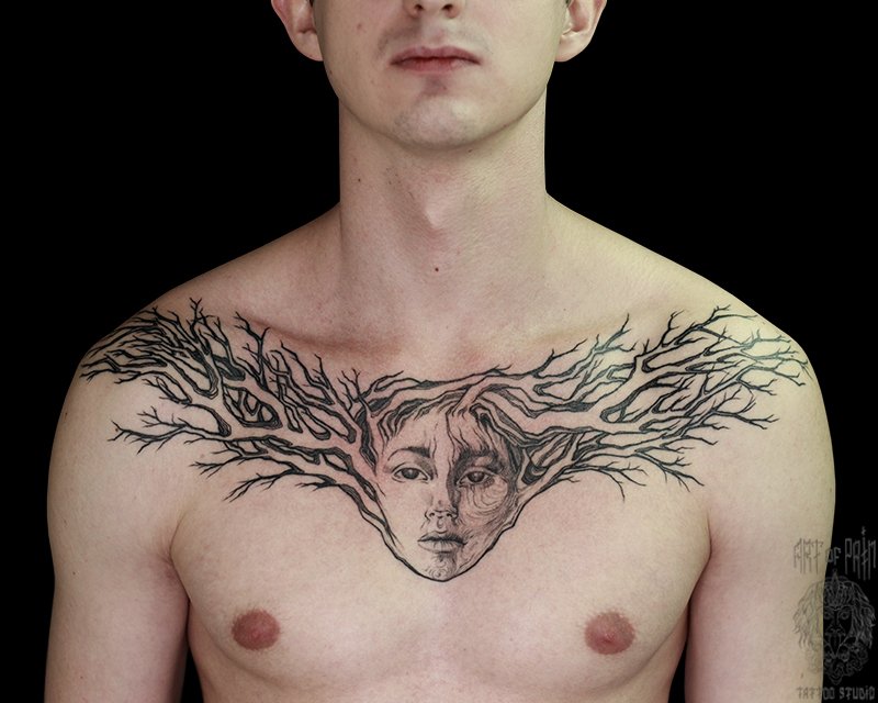 Татуировка мужская графика на груди лицо девушки (Надежда Полякова) 5326