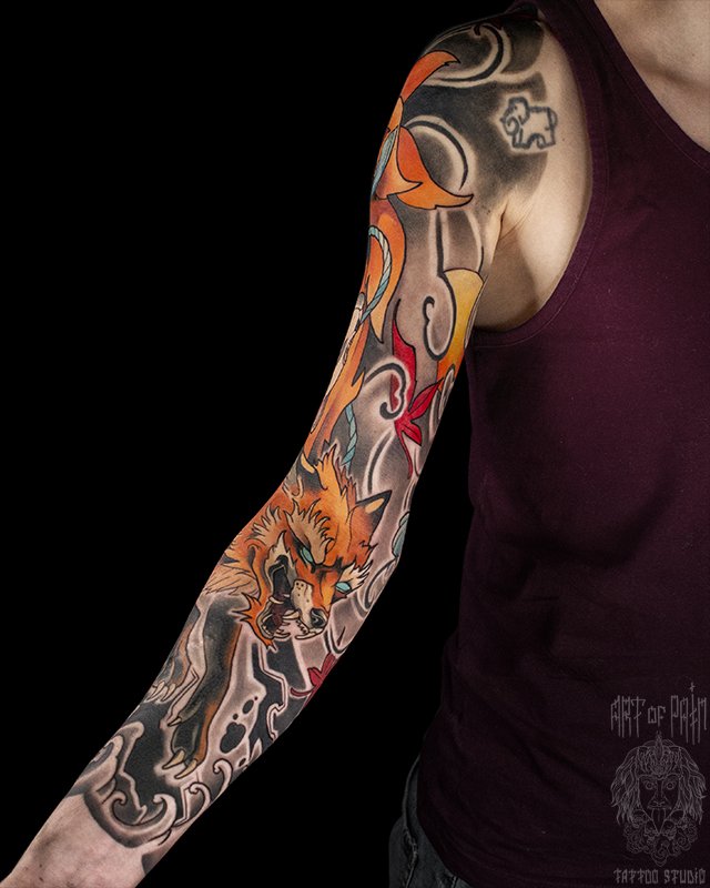 Татуировка мужская япония тату-рукав кицуне 5353