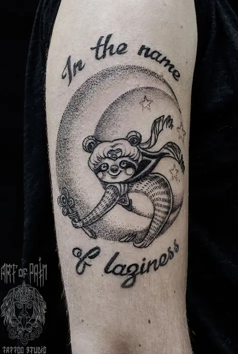 Татуировка мужская графика на руке ленивец 537