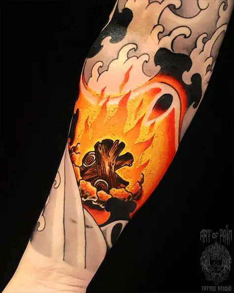 Татуировка мужская япония на предплечье огонь 5391
