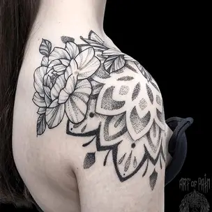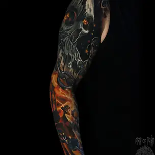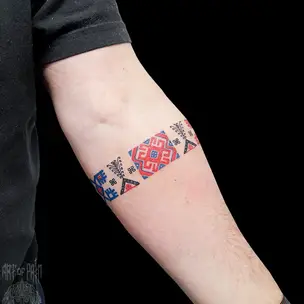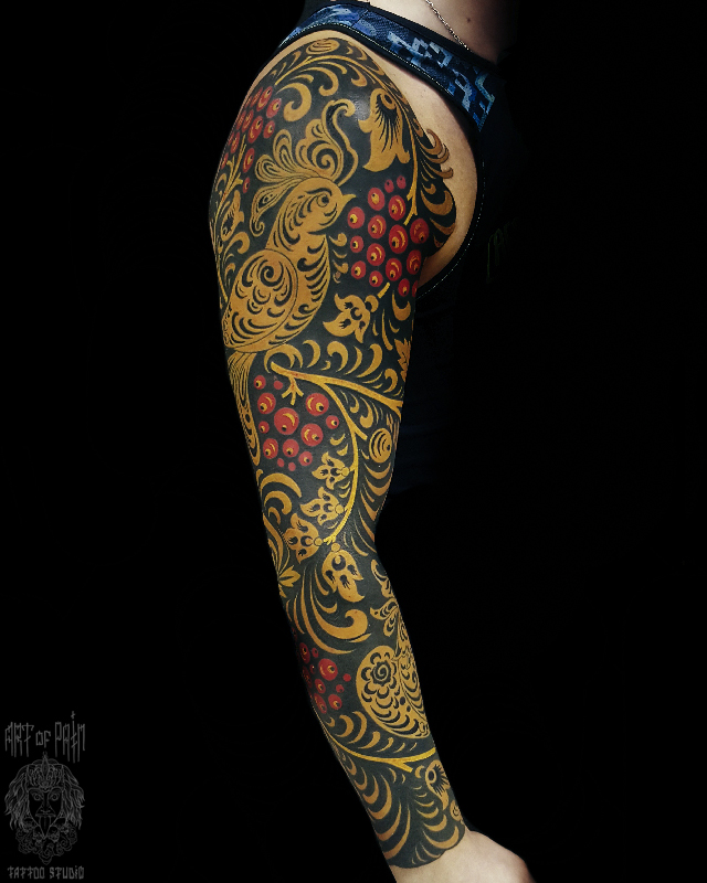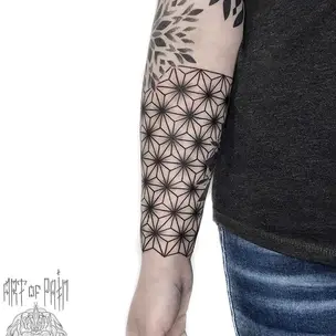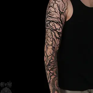 Татуировка мужская орнаментал тату-рукав орнамент и птица 5414