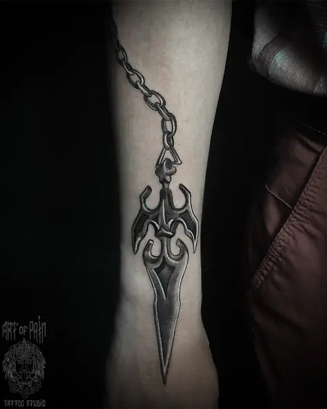 Татуировка мужская графика на руке цепь и кинжал (Анастасия Юсупова) 5426