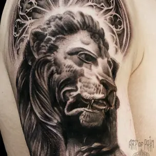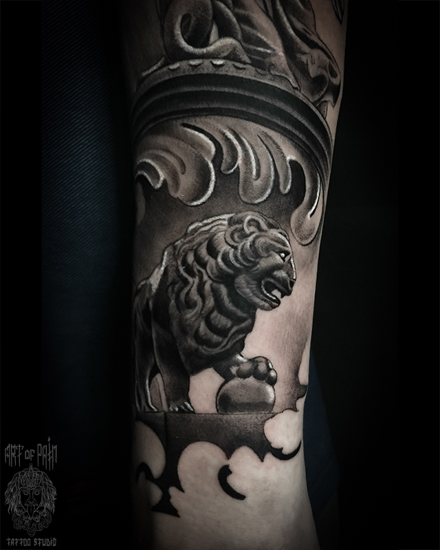 Татуировка мужская реализм чикано на руке лев (Анастасия Юсупова) 5438