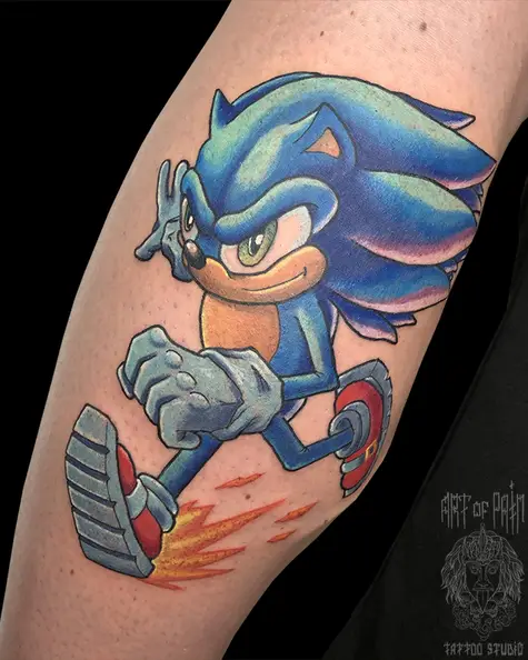 Татуировка мужская нью скул на голени Соник 5466