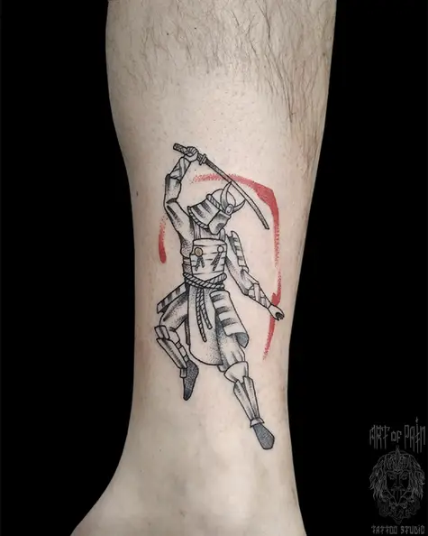 Татуировка мужская графика на голени самурай с оружием (Николай Орф) 5491