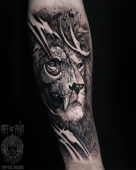 Татуировка мужская реализм на предплечье лев (Слава Tech Lunatic) 5530