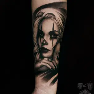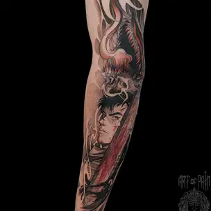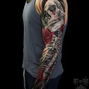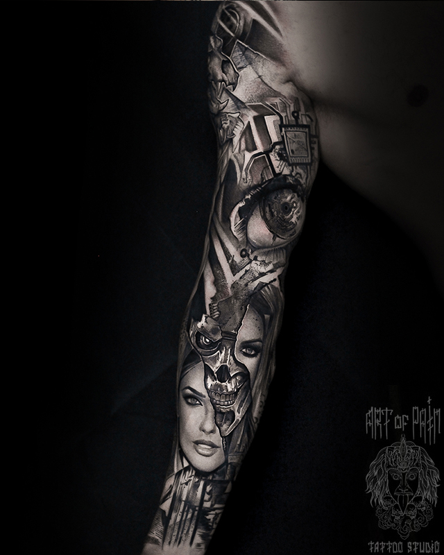 Татуировка мужская реализм тату-рукав девушка, череп, глаз (Слава Tech Lunatic) 5538