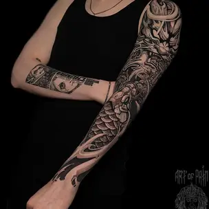 Татуировка мужская хоррор тату-рукав Анубис (Слава Tech Lunatic) 5540