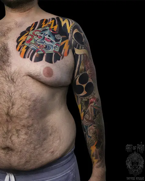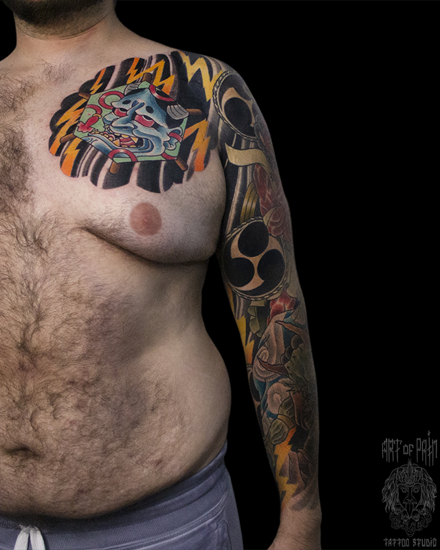 Татуировка мужская япония тату-рукав Они и Ханья 5547