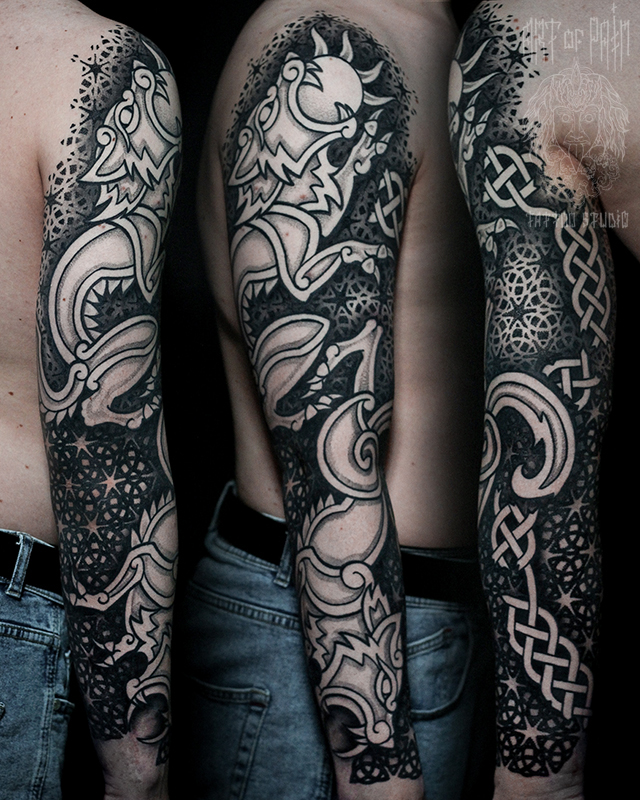 Татуировка мужская кельтика и орнаментал тату-рукав животные, узор (Юрий Хандрыкин) 5588