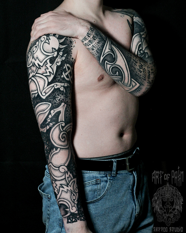 Татуировка мужская кельтика и орнаментал тату-рукав животные, узор (Юрий Хандрыкин) 5589
