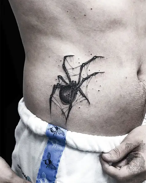 Татуировка мужская графика на боку черный паук (Мария Котова) 5623