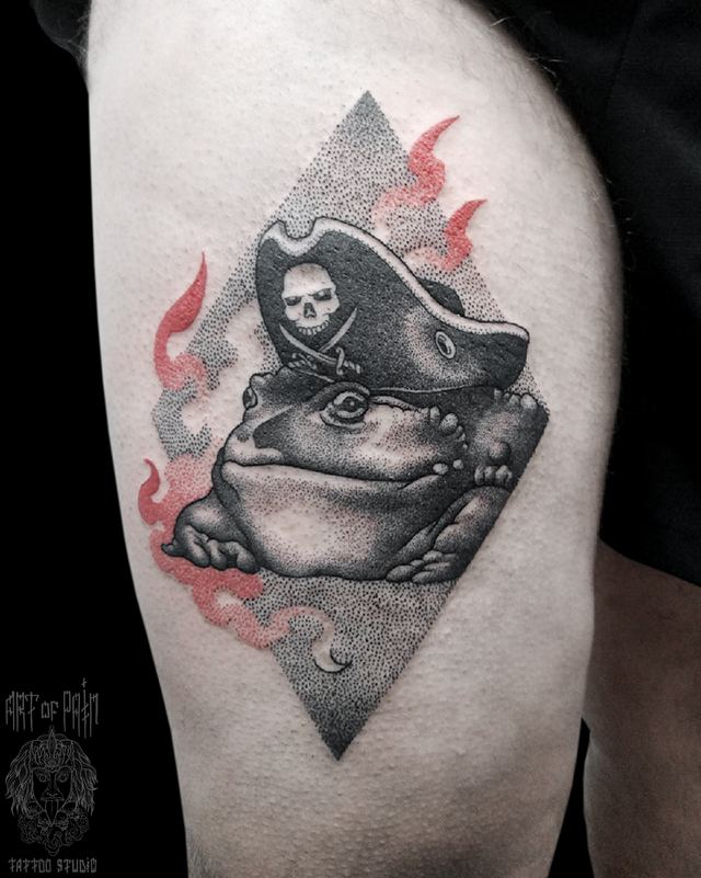 Татуировка мужская графика на бедре жаба (Николай Орф) 5636