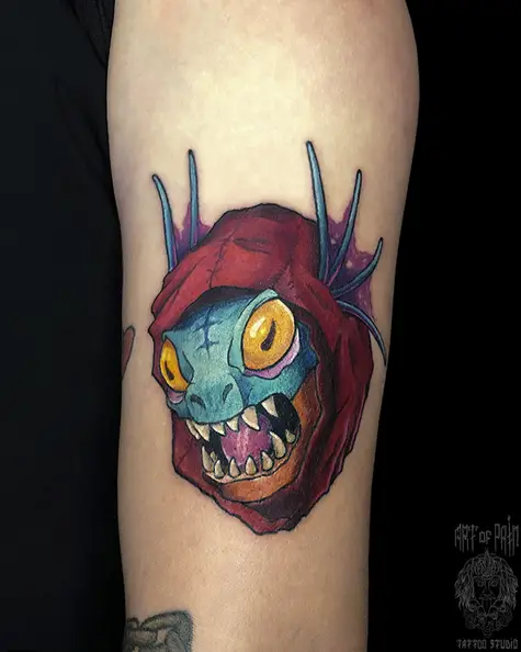 Татуировка мужская нью скул на руке монстр 5695