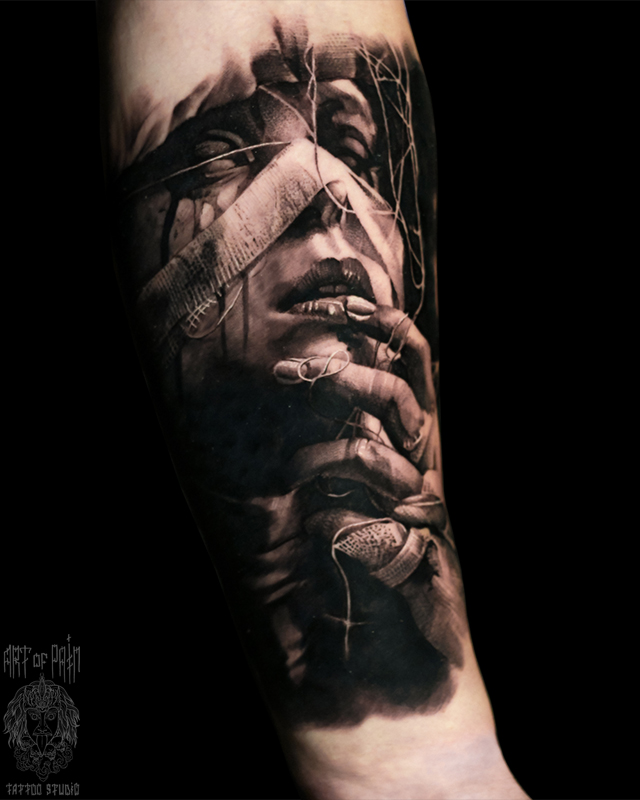 Татуировка мужская хоррор на предплечье девушка 5714