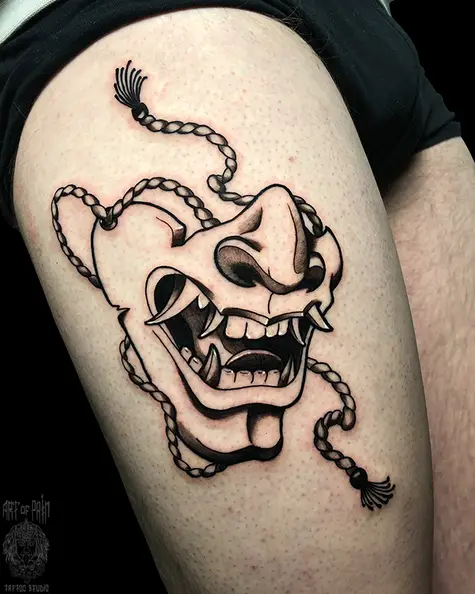 Татуировка мужская графика на бедре маска 5749