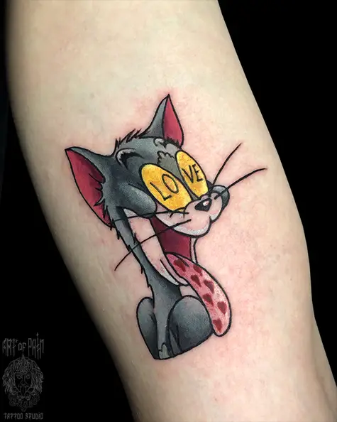 Татуировка мужская нью скул на руке Том 5751