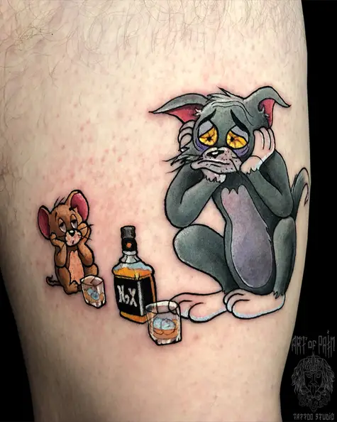 Татуировка мужская нью скул на бедре Том и Джерри 5821