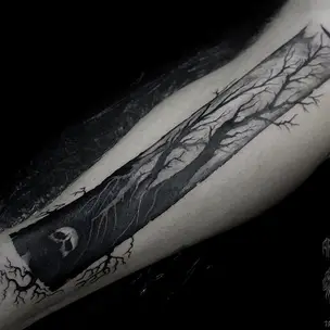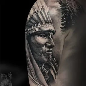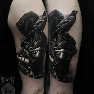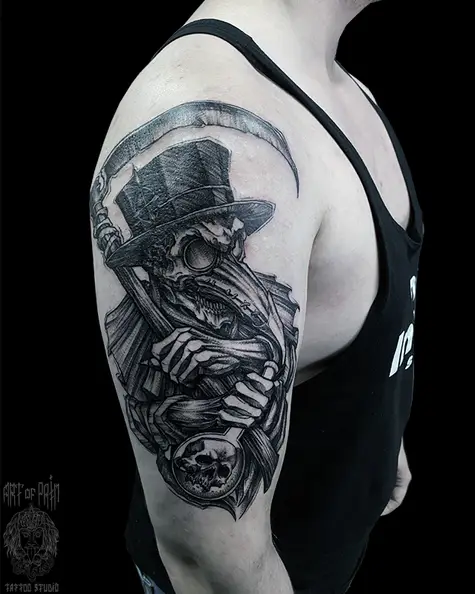 Татуировка мужская хоррор на плече чумной доктор 5822