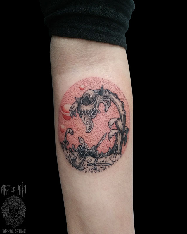 Татуировка мужская графика на руке планеты, нло (Николай Орф) 5863