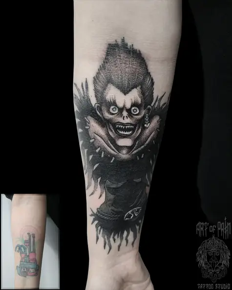 Татуировка мужская графика и дотворк на предплечье монстр (Николай Орф) 5883