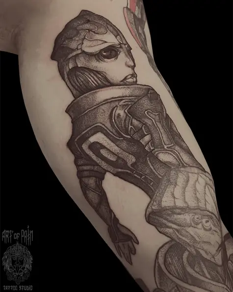 Татуировка мужская нью скул на руке Тейн Криос 5888