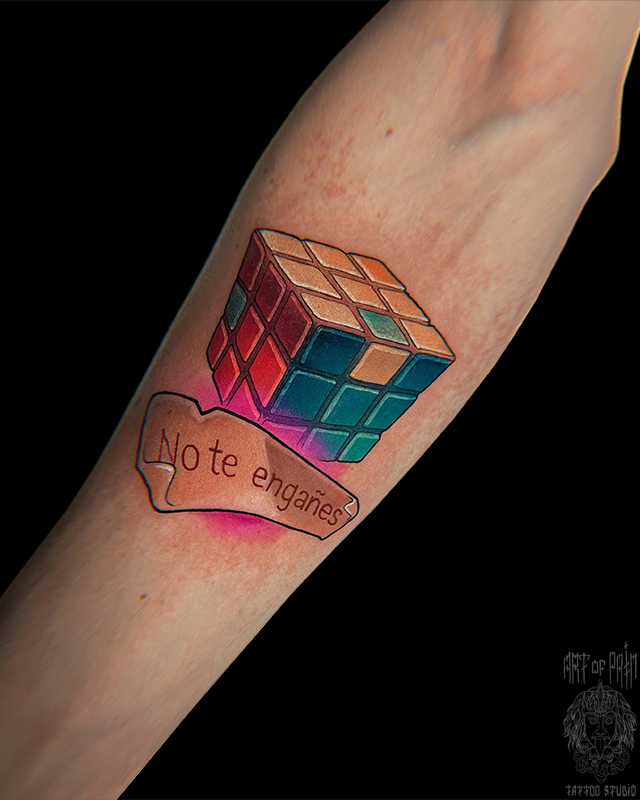 Татуировка мужская нью скул на предплечье кубик-рубик 5890
