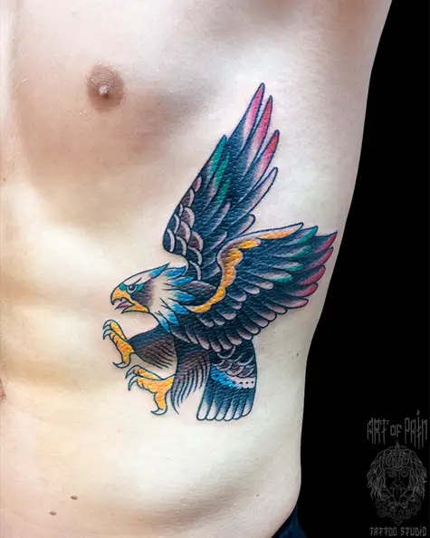 Татуировка мужская олд скул на боку орел (Евгения Шмидт) 5966