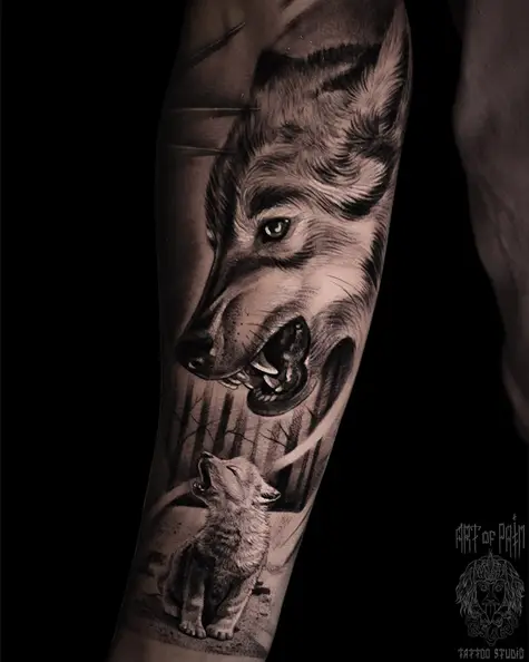 Татуировка мужская реализм на предплечье волки (Анастасия Юсупова) 5997