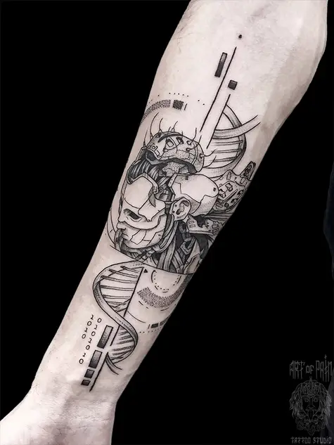 Татуировка мужская графика на предплечье робот (Мария Котова) 6028