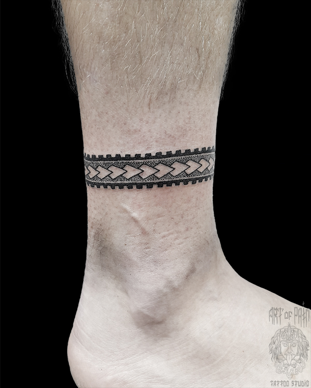 Татуировка мужская графика на щиколотке браслет (Николай Орф) 6029