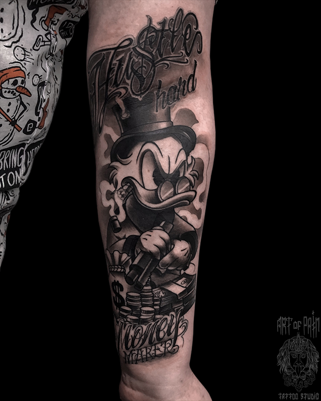 Татуировка мужская нью скул на предплечье Скрудж (Вячеслав Плеханов) 6031