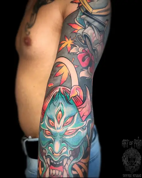Татуировка мужская япония тату-рукав они и штурмовик 6042