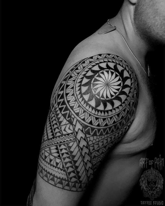 Татуировка мужская полинезия на плече орнамент 6061