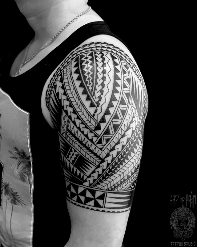 Татуировка мужская полинезия на плече орнамент 6063