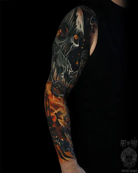 Татуировка мужская реализм тату-рукав череп 6085