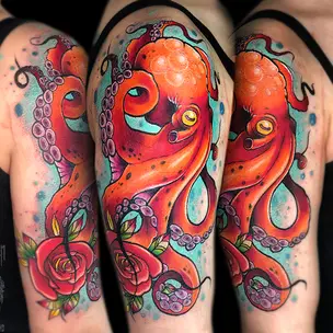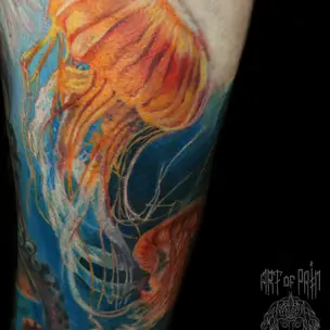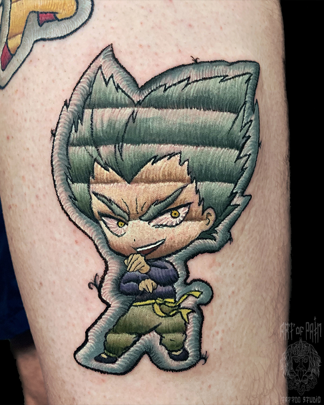 Татуировка мужская нью скул на бедре аниме герой 6110