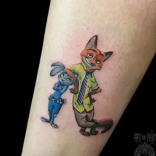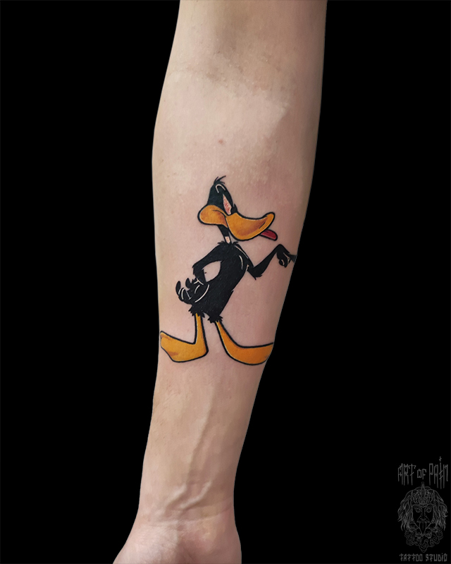 Татуировка мужская нью скул на предплечье Даффи Дак 6125