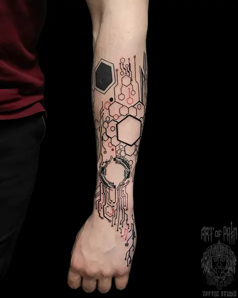 Татуировка мужская графика на предплечье геометрия абстракция (вид спереди) 6151