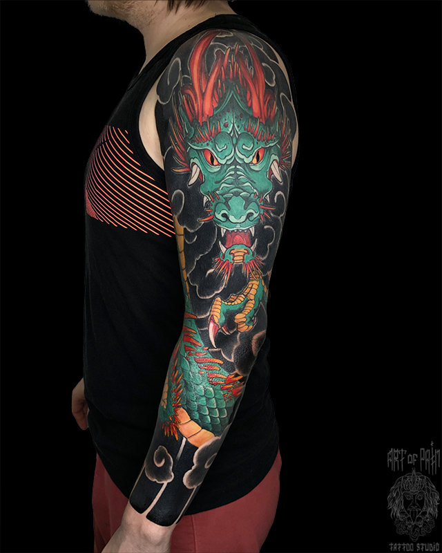 Татуировка мужская япония тату-рукав дракон (вид сбоку) 6180