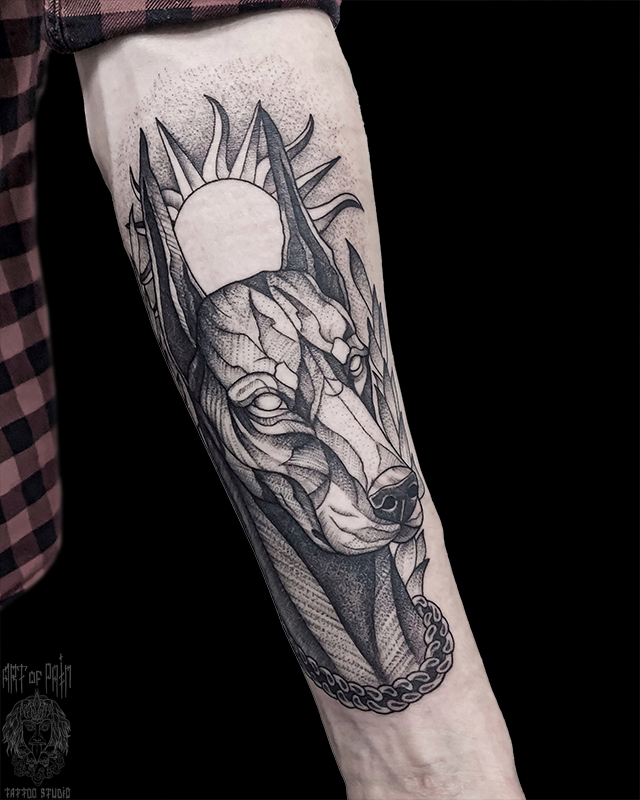 Татуировка мужская графика на предплечье доберман (Мария Котова) 6207